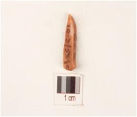 | Description / विवरण | A stone flake made on chert, peach in colour, sharp and very smooth. |
