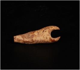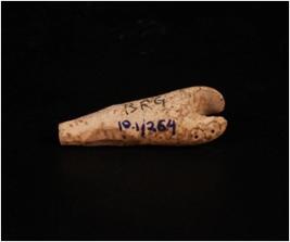 | Description / विवरण | A bone needle, has a tapering end and four circles on the surface with pin hole marks. Probably used for some knitting purpose. |