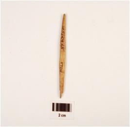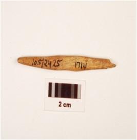 | Description / विवरण | Fragment of bone point with rectangular-cross section, broken at one end and another pointed end polished surface. |