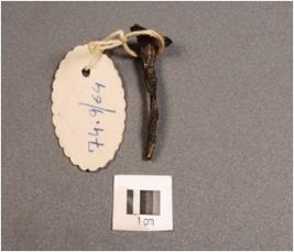 | Description / विवरण | Copper nail of square section with flat broken circular head. |