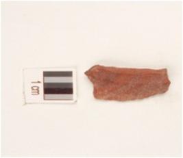 | Description / विवरण | A stone flake made on chert, red in colour, ridges on dorsal side and defused bulb on proximal end. |