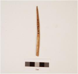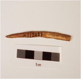 | Description / विवरण | Fragment of bone point with circular cross section, one end broken but another end pointed and rough surface with polish. |