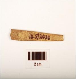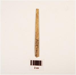 | Description / विवरण | Fragment of bone point, rectangular-cross section, both ends slightly broken, smooth surface with polish. |
