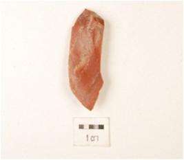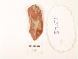 | Description / विवरण | A utilized flake made by chert, flake scars on the surface, prepared platform on the proximal end, distal end pointed and partly retouching on the cutting edges. |