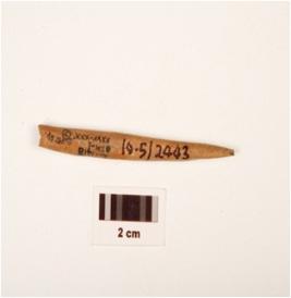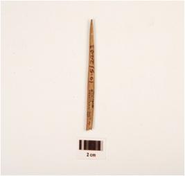 | Description / विवरण | Fragment of a bone point with irregular circular-cross section, broken at one end, another end pointed and surface is smooth. |