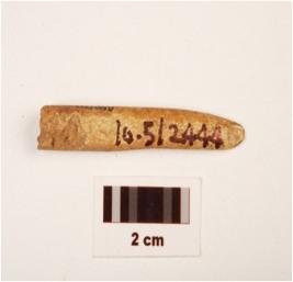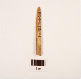 | Description / विवरण | Fragment of bone point, broken at one end another end pointed, rough surface with polished |