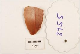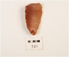 | Description / विवरण | A chert blade, mid ridge end scraper flake scars on the surface, prepared platform on the proximal end and distal end intact and partly retouching on the cutting edges. |
