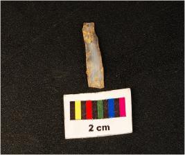 | Description / विवरण | A microlithic blade with a ridge on dorsal broken at distal end and triangular in section. |