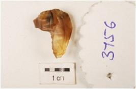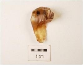 | Description / विवरण | A fragment of core made on chalcedony, six flake scars on the surface, diffused bulb on the ventral and use wear marks on the surface. |