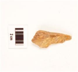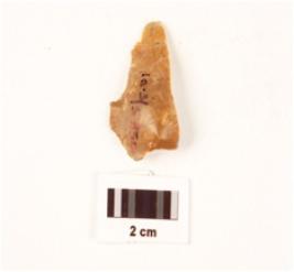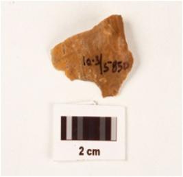 | Description / विवरण | A chert side scraper, yellow coloured chert, prominent bulb at the proximal end, irregular working edge. |