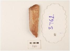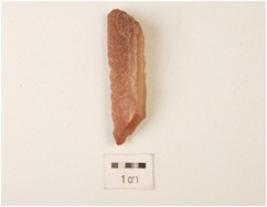 | Description / विवरण | A chert utilized flake, flake scars on the surface, uneven shape and use wear marks on the cutting edges. |