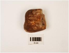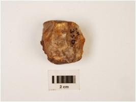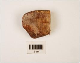 | Description / विवरण | A flake of chalcedony flake scars and cortex on surface. |