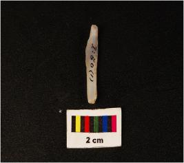 | Description / विवरण | A microlithic point with a mid ridge on dorsal side, bulb on ventral broken at distal end and triangular in section. |
