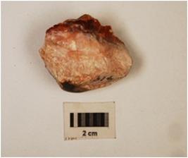 | Description / विवरण | A flake of chert, flake scars and cortex on surface. |