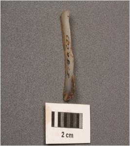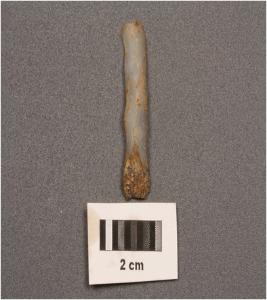 | Description / विवरण | Parallel sided chalcedony blade, mid ridge on dorsal use wear on edge and cortex visible on dorsal side. |