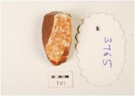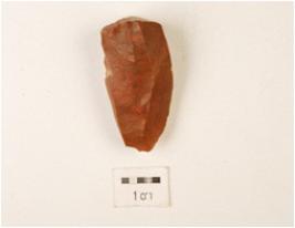 | Description / विवरण | A core made by chert, six flake scars and cortex on surface, prepared platform on the proximal end, distal end sharp and use wear marks on th cutting edges. |