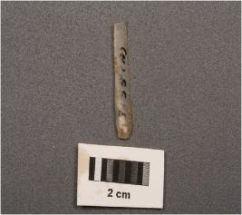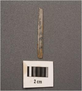 | Description / विवरण | Parallel sided microlithic blade with double ridges on dorsal bulb on trapezoidal section use wear marks on cutting edges and broken at distal end. |