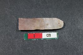 | Description / विवरण | Fragment of a Blade with two dorsal ridges having smooth surface. It also ha bulb of percussion on the ventral side. |