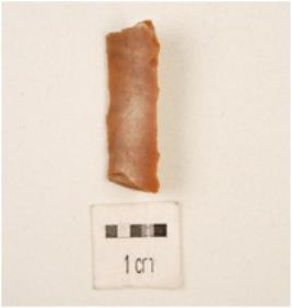 | Description / विवरण | A chert blade with mid ridge on dorsal, prepared platform on the proximal end and use ware on the cutting edges. |