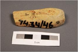 | Description / विवरण | Stone polisher made on sandstone. Smooth surface and side, cortex on surface and partly rectangular in shaped. |