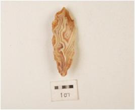 | Description / विवरण | A carnelian point two flake scars on the surface, band, cortex on surface and ridge on the middle surface, prominent bulb on the ventral side and use wear marks on the cutting edges. |