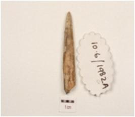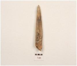 | Description / विवरण | A bone point, polished, intact tip, broken head end, uneven and rough surface. |
