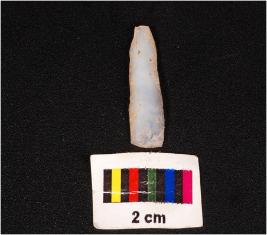 | Description / विवरण | Parallel sided blade made on chalcedony mid ridge on dorsal ventral is smooth with diffuse bulb and use wear marks on edge. |