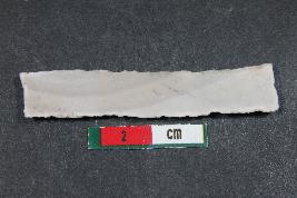 | Description / विवरण | Fragment of a Blade with two dorsal ridges having smooth surface. It also has bulb of percussion on the ventral side. |
