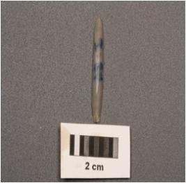 | Description / विवरण | A microlithic point with two ridges on dorsal side, broken along distal end, triangular in section and diffused bulb on ventral. |