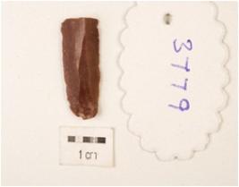 | Description / विवरण | A chert blade, 2 ridge on dorsal prepared platform on the proximal end, distal end intact and use wear marks on the cutting edges. |