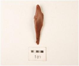 | Description / विवरण | A chert utilized flake scars on the surface, prepared platform on the proximal end, distal end pointed and use wear marks on the ventral side. |