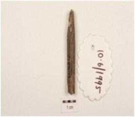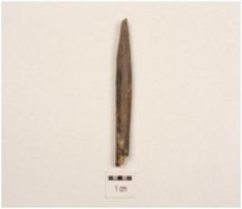| Description / विवरण | A charred bone point, polished, chipped off tip end, broken other end, circular section. |
