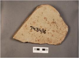 | Description / विवरण | Broken grinding stone with both sides use wear marks, miceous particles are visible on surface. |