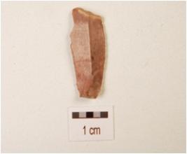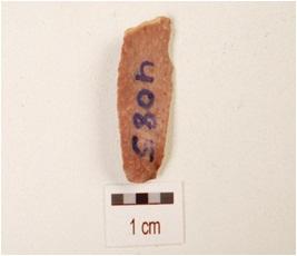 | Description / विवरण | A blade, made on chert with prepared platform, bulb on ventral, prominent mid-ridge on dorsal side, use wear marks on cutting edge and triangular in section. |