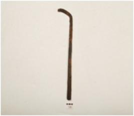 | Description / विवरण | Iron nail with out head broken from both ends, slightly thick at one end, partly bent from pointed end, chemically treated and square in section. |