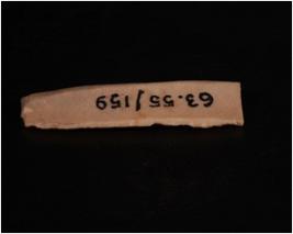 | Description / विवरण | A chert blade with mid ridge on dorsal. Cutting edges and triangular section. |