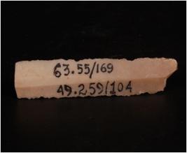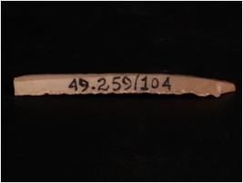 | Description / विवरण | A chert blade with mid ridge on dorsal side use wear marks on cutting edge and triangular section. |