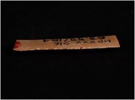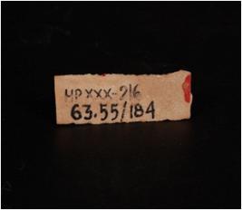 | Description / विवरण | A small blade of chert with flaking marks and two parallel ridges on the surface, cutting edges and trapezoidal section. |