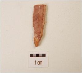 | Description / विवरण | A blade, made on chert with double ridge on dorsal side, use-wear marks on cutting edge, trapezoidal in section and prepared platform. |