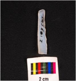 | Description / विवरण | Parallel sided blade, made of chalcedony mid ridge on dorsal ventral is smooth and use wear marks on edge. |