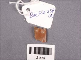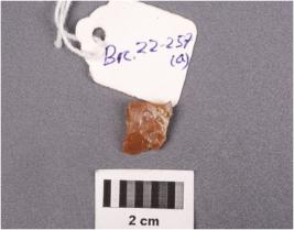 | Description / विवरण | Fragment of a chert blade, prepared platform, diffused bulb on ventral side and use-wear marks along the cutting edge. |