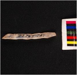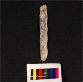 | Description / विवरण | Parallel sided blade, made on chalcedony wavy ridge on dorsal ventral is smooth with diffuse bulb on ventral and use wear marks on edge. |