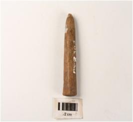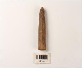 | Description / विवरण | A point made on bone, conical in shape and has a flat base and sharp tip, very glossy surface, chisel marks on surface. |