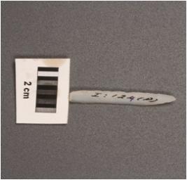 | Description / विवरण | Parallel sided blade, use wear marks on one working edge and proximal end broken. |