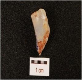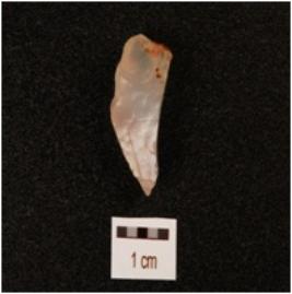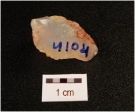 | Description / विवरण | A core, made on chalcedony with four blade scars on surface. |