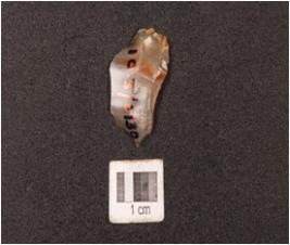 | Description / विवरण | A micro blade made on chalcedony with flake scars on the surface, it has diffused bulb on the ventral side and pointed at one end. |