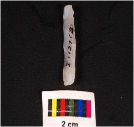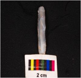 | Description / विवरण | Parallel sided blade, made on chalcedony mid ridge on dorsal ventral is smooth and use wear marks on edge. |