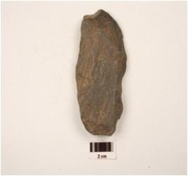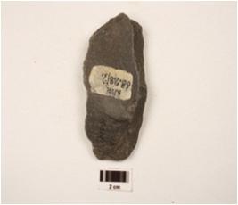 | Description / विवरण | Scraper made on end struck basalt flake, prepared platform, with chipped of surface, dorsal side and prominent bulb on ventral side, retouched marks along cutting edges. |