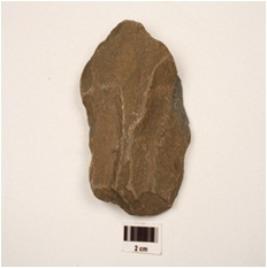 | Description / विवरण | Scraper made on quartzite flake with prepared platform, flake scars on dorsal side and prominent bulb on ventral side, retouched marks along cutting edges. |