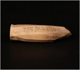 | Description / विवरण | An irregular fluted core of chert with nine blade scars on the surface and prepared platform. |